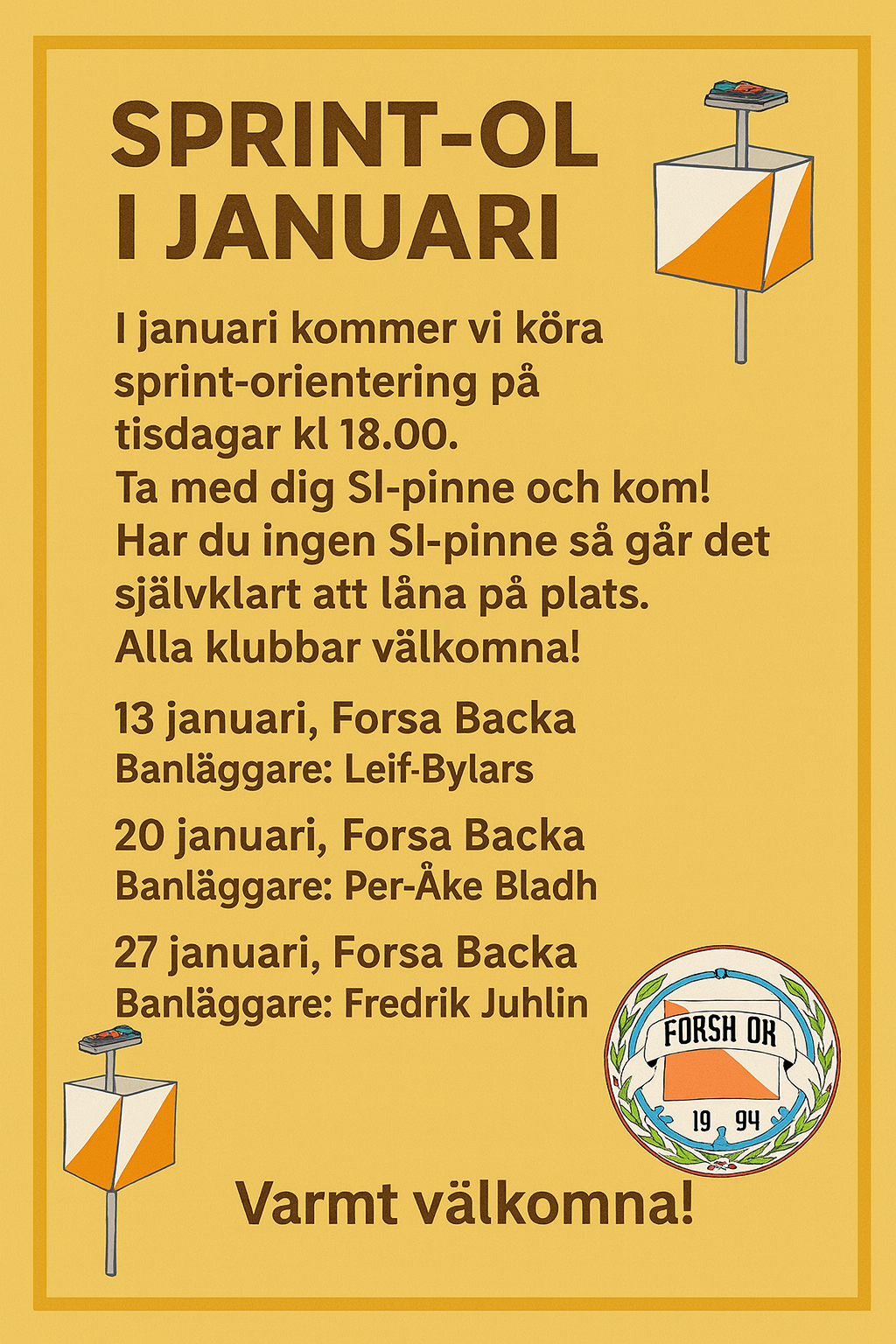 av Johan Nyman– en jultävling med Forsa OK. UPPDATERING 1 jan: Tävlingen är nu avslutad. Vinnarna är lottnr 8 500kr, lottnr 45 300 och lottnr 47 200kr. Hitta Julgranen är en tävling där du ska hitta en pyntad julgran som står någonstans i Forsaskogarna. Kuvert med kartor/lottnummer finns att köpa på ICA… Continue reading Hitta Julgranen! - Nyårsorienteringav Linn Bylars